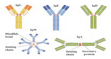 Both IgM and IgG belong to the immunoglobulin family. Immunoglobulin is a type of serum active component produced by plasma cells under the stimulation of antigen substances that can specifically bind to antigen. According to their molecular structure and antigen specificity, immunoglobulins are divided into five categories: IgG, IgA, IgM, IgD, IgE (as shown in Figure 1):